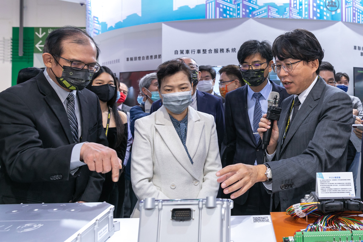 另一亮點為碳化矽動力馬達驅控器,碳化矽目前最夯的新一代化合物半導體材料,有著高切頻(小體積)、高效率及耐熱佳等特性,工研院發表的國內首款車用碳化矽動力驅控器,是全世界少數開發出之技術,與TESLA同步,其有著40kW/L 高功率密度及99%高效率設計的國際級水準,更符合車用高壓大功率車型需求,未來將可應用於電動貨卡車或電動巴士,提供動力驅控器國產自主完整解決方案。