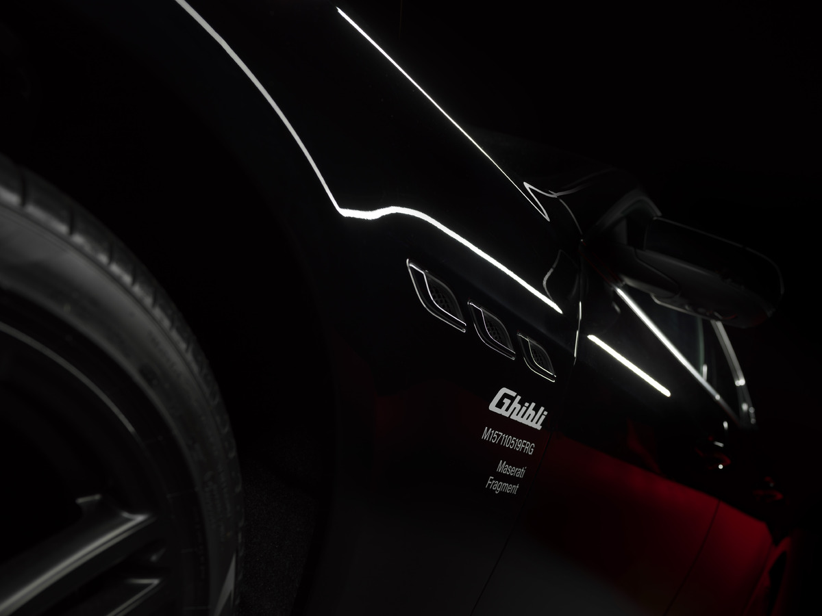 更值得一提的是,車側散熱鰭孔下方Ghibli Fragment鐫刻上一串神秘代碼- M157110519FRG,前方四碼“M157”代表 Ghibli的車型ID;“110519” 是記錄藤原浩和 Maserati 設計中心首次見面日期 (2019 年 11 月 5 日);“FRG” 則為Fragment縮寫,紀念此次的跨界合作。