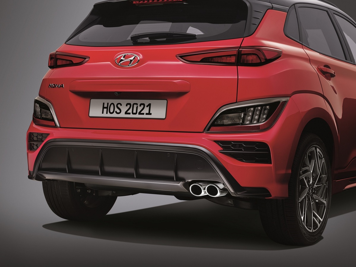 跨界跑格、前衛設計一直是KONA在同級休旅市場高度矚目主因,新款進化後前衛設計更顯成熟風格。車體運動奔放的流線、Two-Tone雙色混搭,加上新蜂巢進氣壩與運動化霧銀前後新式保桿、分離式LED頭尾燈組註1,讓原本就出眾運動氣息更狂傲。尤其在頂規KONA N Line獨有專屬黑色網格水箱護罩、N Line銘板、N Line蜂巢進氣壩與前保桿垂直進氣簾,視覺效果更銳利。車尾後下擾流鰭片、單邊雙出尾管,升級18吋鑽石型切削運動化鋁圈配置性能跑胎,展現誓言彎道流氓的個性。