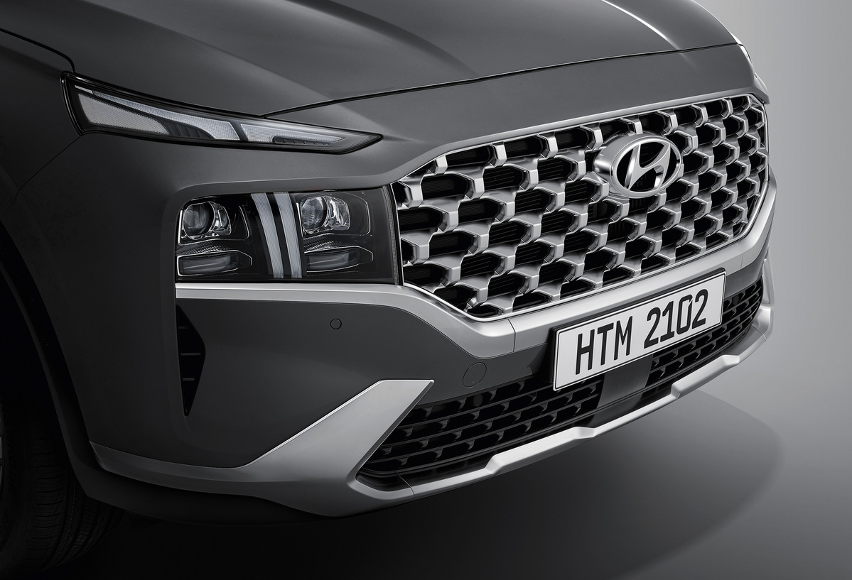 The New SANTA FE全能旗艦承襲尊榮、追求新意,細膩刻畫的嶄新世代王者身形,融會其擅長豪華貴族氣勢。新車格尺碼放大至4,785 x 1,900 x 1,710mm,碩大醒目的Cascading Grill立體網柵水箱護罩,結合貫穿式T-Shaped LED 燈組設計,大膽突破想像打造耳目一新印象。