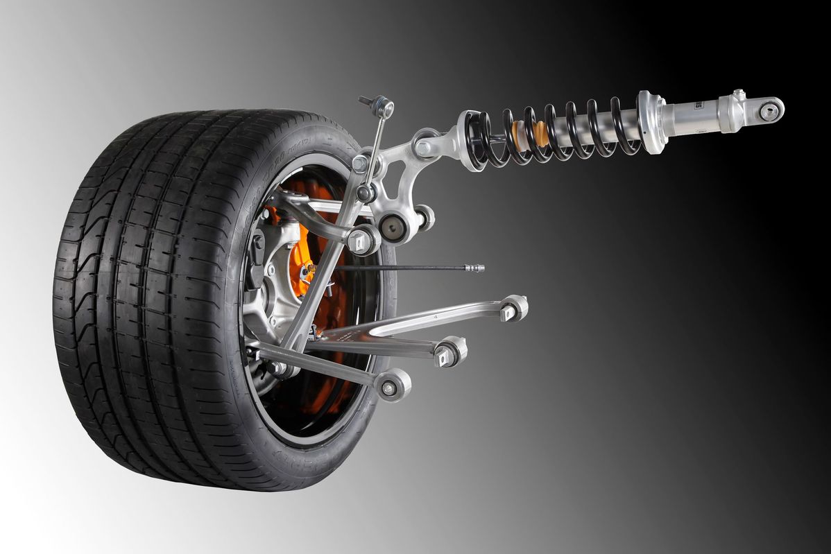 自發表初始,Aventador車系即應用了先進的推杆式懸吊系統。水平陳列的彈簧及減震器設計概念源自於F1賽車,經由Lamborghini細膩調校,充分滿足了高性能公路跑車的行駛需求。至家族後繼車款— Lamborghini LP 750-4 Superveloce融入主動電磁式避震器的推杆式懸吊系統,帶來更完美操控表現,強化車輛對任何路況的掌握度,在彎道中大幅提高車身穩定性、減少側傾;「主動式」特性,賦予車輛平穩的煞停體驗,為駕駛帶來安全無慮又舒適的道路駕駛體驗。