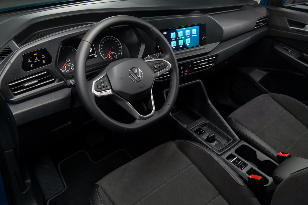 全新Caddy Maxi充滿現代感同時兼顧實用機能性的車室座艙,採用福斯車系新世代中控設計思維,透過整合全新一代觸控面板,以數位化、簡約化、直覺化的面板顯示取代傳統旋鈕與按鍵,舉凡位於駕駛座左側的數位觸控車燈組控制面板、中控台觸控式功能快捷鍵整合多項車用功能、新世代多媒體影音系統、電子線傳式排檔系統、按鍵式電子手煞車及觸控式車艙LED照明燈等,營造出煥然一新的科技氛圍。同級車款中最大的中控台尺寸: Composition 8.25吋觸控螢幕原廠影音系統,並結合APP-Connect手機多媒體連結功能,在功能整合上也更趨完善。至於融入駕駛導向設計的中控台,不僅讓駕駛者使用上更為便利,也更易讀取各項行車資訊;車上的三幅式真皮多功能方向盤(含換檔撥片),可整合行車資訊控制、多媒體系統控制、IQ.DRIVE智能駕駛輔助系統,達到手不離盤即可進行直覺化操作。