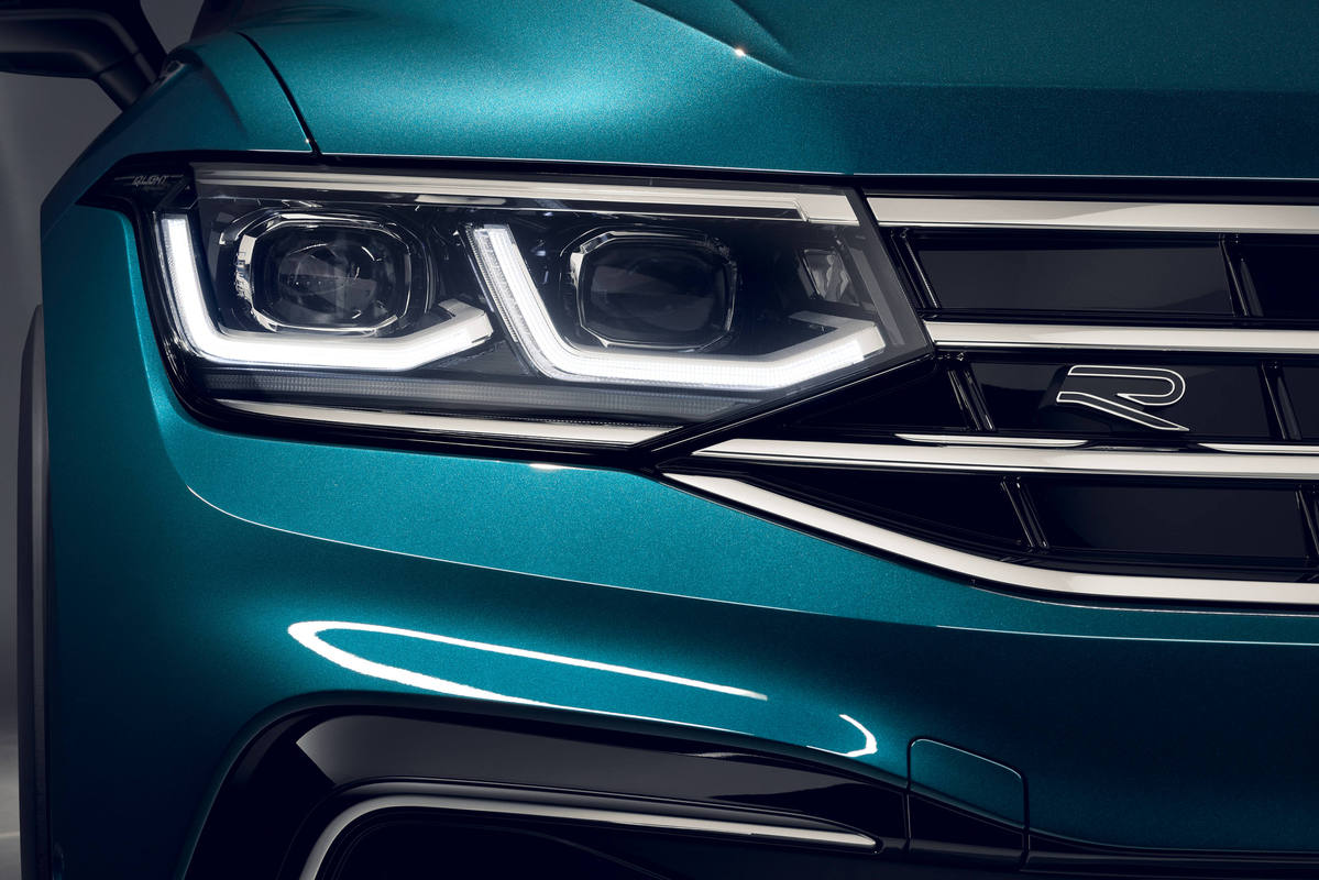 The new Tiguan 380 TSI R-Line Performance擁有IQ.LIGHT智慧燈組: LED Matrix 矩陣式頭燈,其具備多模式照明技術且光型依據環境、車速、駕駛模式及轉向角度進行智慧變化,且可透過DLA動態頭燈自動切換功能,讓遠光燈局部進行動態遮蔽,避免造成前車以及對向來車之眩光,提供駕駛最佳照明視距,搭配Level 2等級的IQ.DRIVE智能駕駛輔助系統、Area View 360 度環景顯示等完整先進主被動安全防護科技,打造全方位型車安全防護,全時守護駕駛行車安全。
