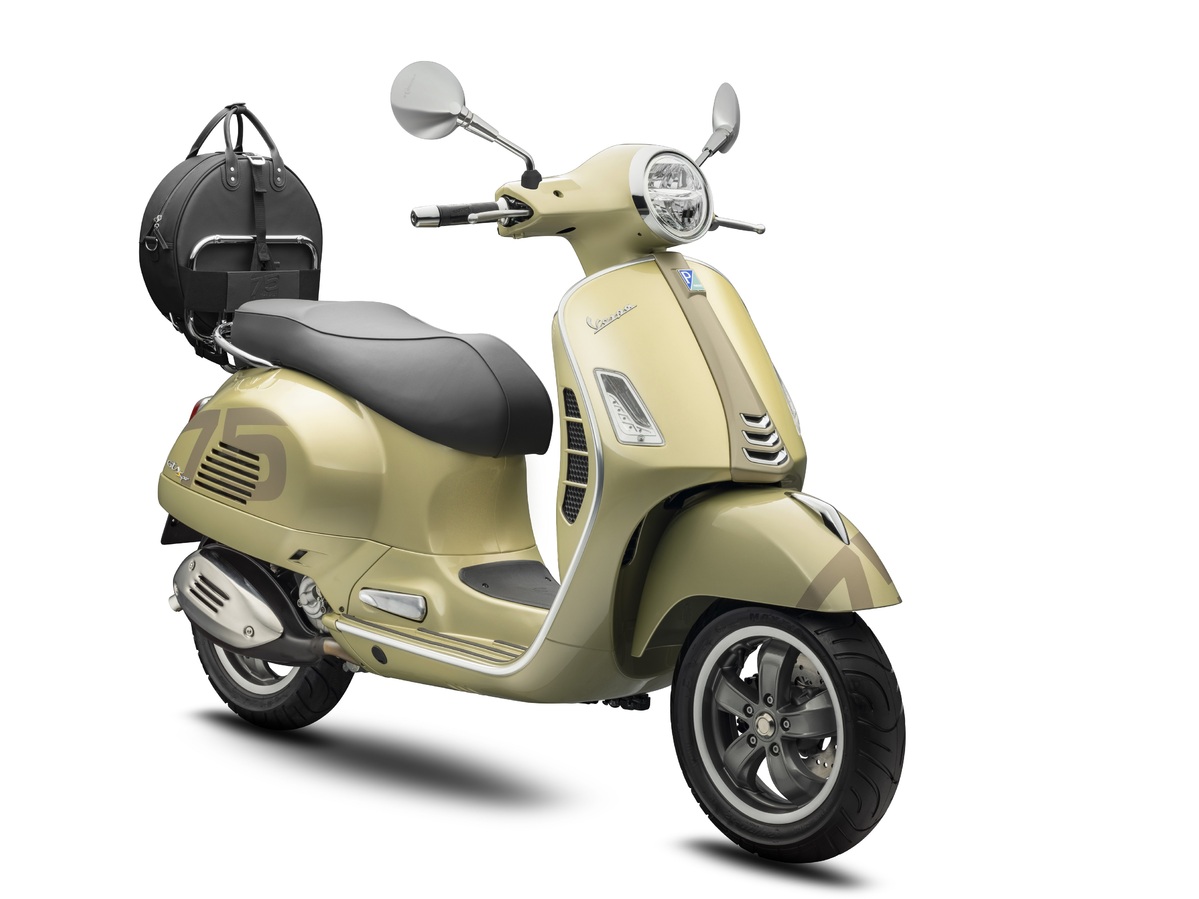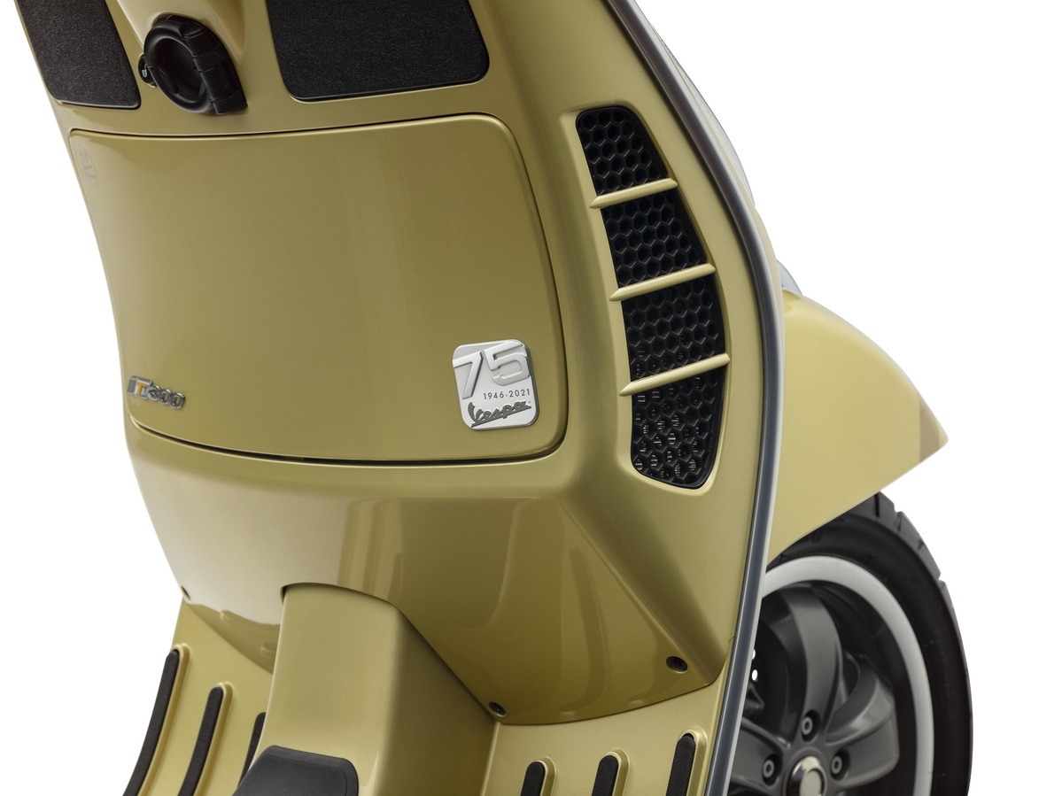 Vespa 75週年特仕版承襲Vespa的傳統,採用鋼製單體式車架,並選用「琉璃金」自然金屬色澤,作為對1940年代流行色調的現代詮釋,呼應Vespa完美融合傳統、創新、與時尚的風格。除此之外,Vespa 75週年特仕版使用同色系但較深的陰影色調進行細節點綴,包含車頭造型領結飾蓋以及在前土除和車側兩旁的數字「75」,營造其低調奢華的風格。