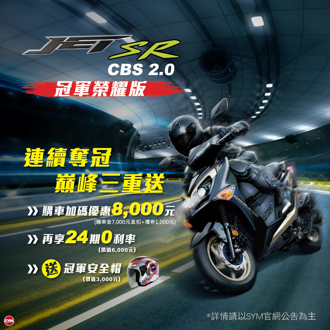 詳細車款資訊及優惠訊息請參閱官網 https://tw.sym-global.com/jet-sr。