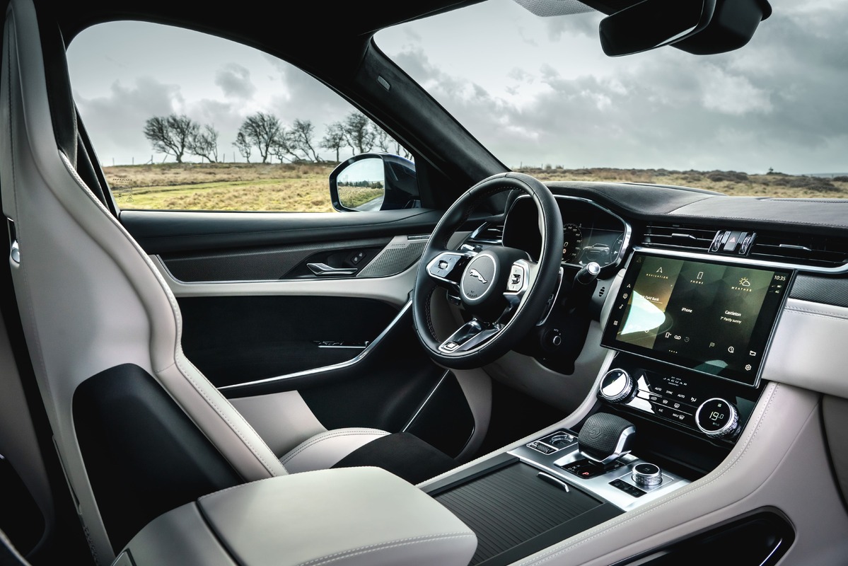 透過SVO部門的匠心獨具,New Jaguar F-PACE SVR在外觀設計上結合了為追求極致性能而生的一系列強化配備,包含SVR專屬引擎蓋進氣孔、SVR車側通風孔、側裙與輪拱、SVR專屬固定式尾翼、SVR專屬後分流器,達到空力性能強化與導流的機能,而全車空氣力學優化更進一步使New Jaguar F-PACE SVR減少35%的車輛抬升力,整體風阻相較於前一代更減少3%。