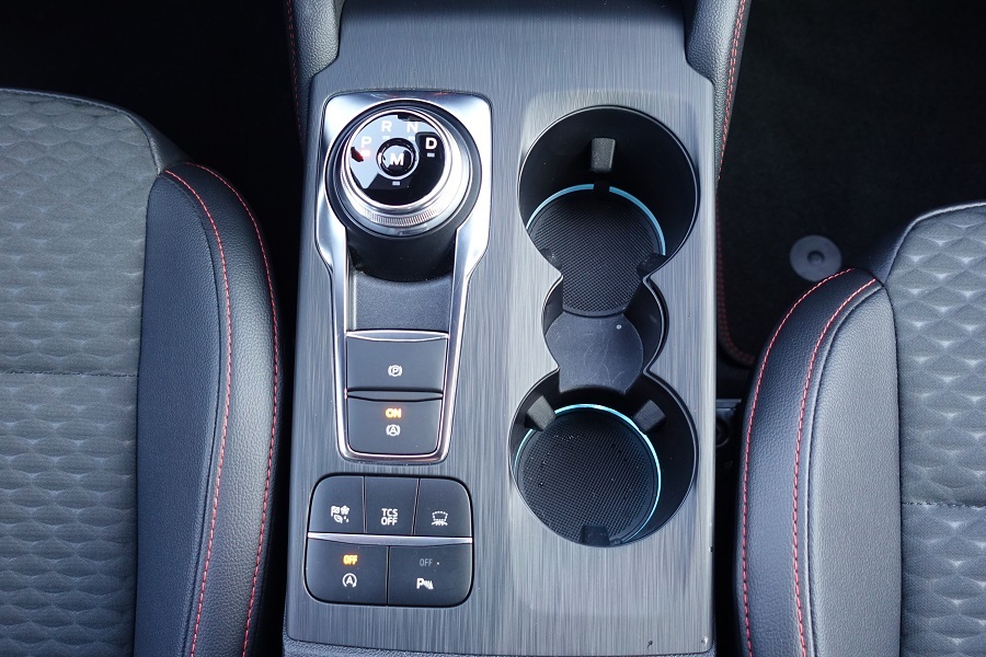 鞍座的配置可精彩了,因為它的設置可以說是大大超越了售價的價值,首先是旋鈕式的E-Shifter電子排檔,在同級車中要看到電子排檔是不可能的,接著是由全速域ACC延伸而來的電子手煞車及Auto Hold按鍵,加上三種駕駛模式(標準、省油、運動)控鍵、TCS關閉按鍵、HUD調整按鍵、引擎自動休止啟動按鍵以及異物接近偵測警示音關閉按鍵,幾乎可以說是同級車中的電子科技超前佈署。在鞍座前方還有QI手機無線充電面板及USB插孔,只能說在Focus ST-Line Lommel X車上,電子科技配備已經是同級車中無車能敵了!