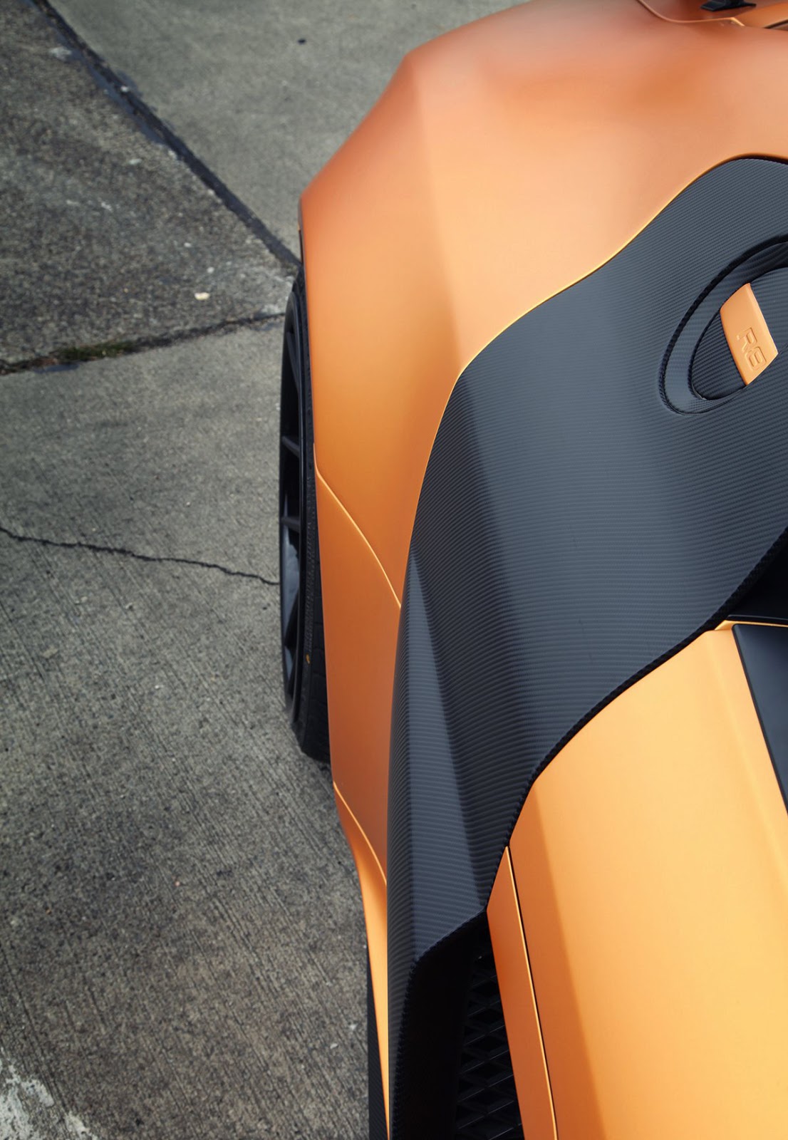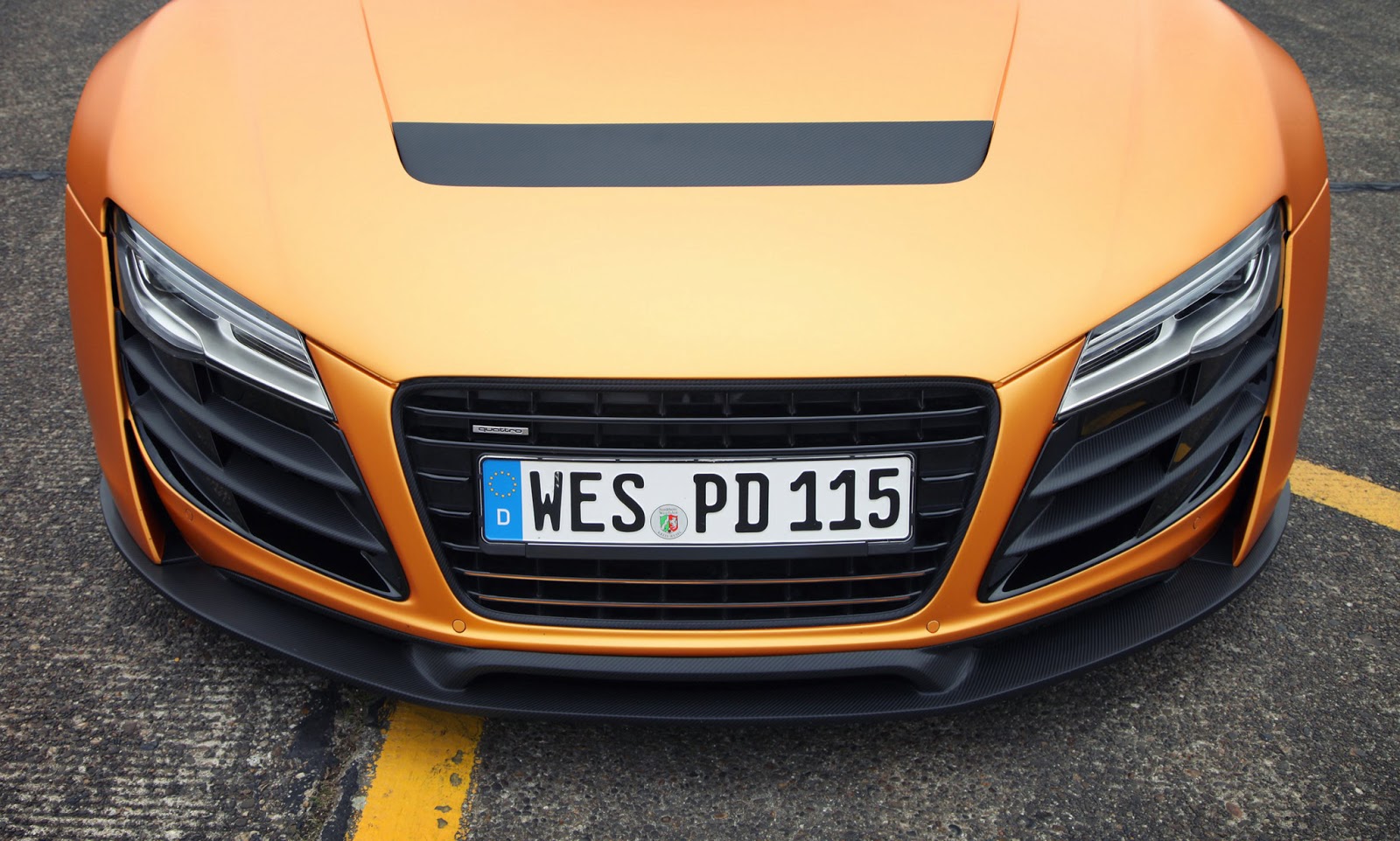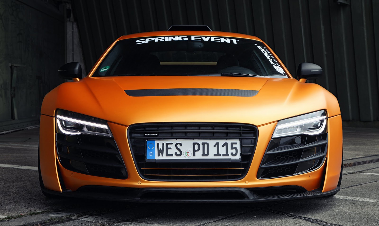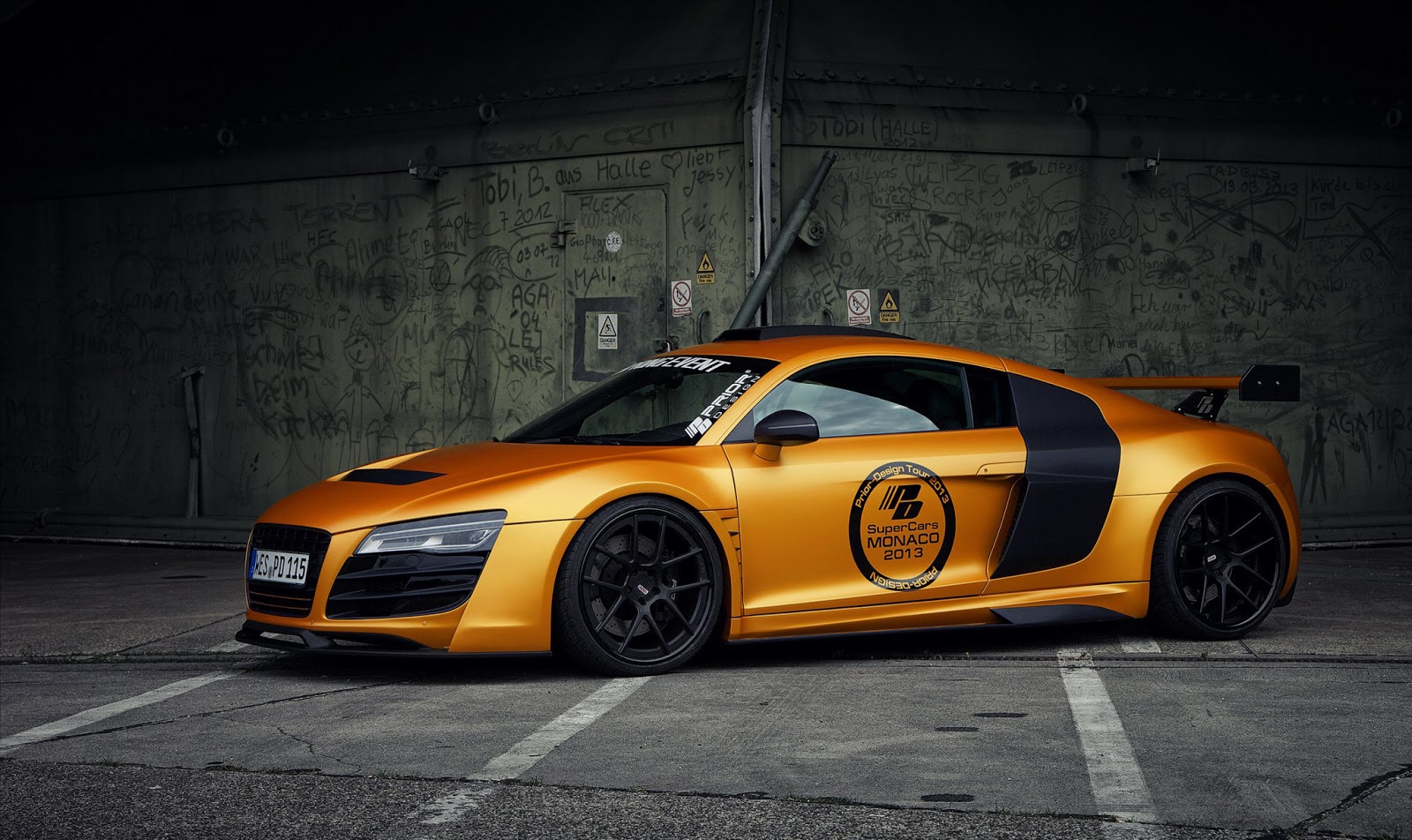 這輛消光橘R8是由德國的改裝廠Prior Design操刀,這也是他們對於R8的第二次改裝,門上的標誌證明了他們在2013摩納哥超跑展上露面。