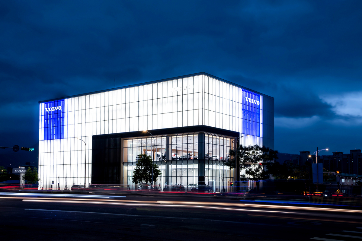 VOLVO 新凱士林旗艦店坐落於北投士林科技園區,總樓地板面積近 2,500 坪,與兒童新樂園、科教館、天文館等熱門地標相接,鄰近北投與天母生活圈佔盡地利之便。全棟建築為呼應原廠綠色永續的理念,加入太陽能板、雨水回收系統和大量綠色植栽元素,同時突破室內空間運用和建築外觀材質的既定限制,透過超大的明亮落地窗讓路過的人們可以遠眺 VOLVO 各式車型,更在入夜後的照明之下,將 VOLVO 新凱士林據點裝飾宛如夜明珠一般,姿態高雅卻不失溫暖。