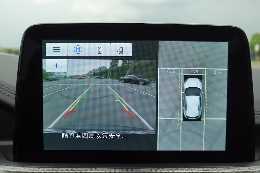 360度環景顯示更是保障安全的一大利器,藉由四周四部攝影頭將周圍360度的影像顯示在中央8吋懸浮屏幕上,藉由七種視角調整,讓倒車、停車時視野無死角,甚至在狹小巷弄也能輔助轉向及穿越而不碰撞