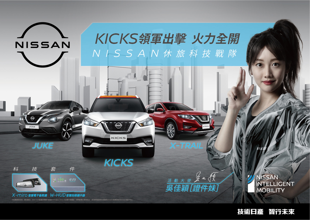 全球戰略車款NISSAN KICKS 自2018年上市以來,以年輕動感外觀、質感細膩內在,兼具智能、安全、動能與科技安全防護,以及令人驚艷的油耗表現,贏得廣大消費者的關注與喜愛。為滿足車主對時尚與自我風格的追求,裕隆日產汽車於2021年9月2日推出「NISSAN KICKS哈騷版」全新上市,大受市場好評,展現KICKS跨界休旅小霸主之姿,引領時尚都會潮流。KICKS領軍NISSAN休旅科技戰隊火力全開,自2021年12月1日至12月30日止,KICKS推出限時優惠2萬元可享升級原建議售價3萬元之「科技套件」W-HUD智慧抬頭顯示器、X-miro電子智慧後視鏡。