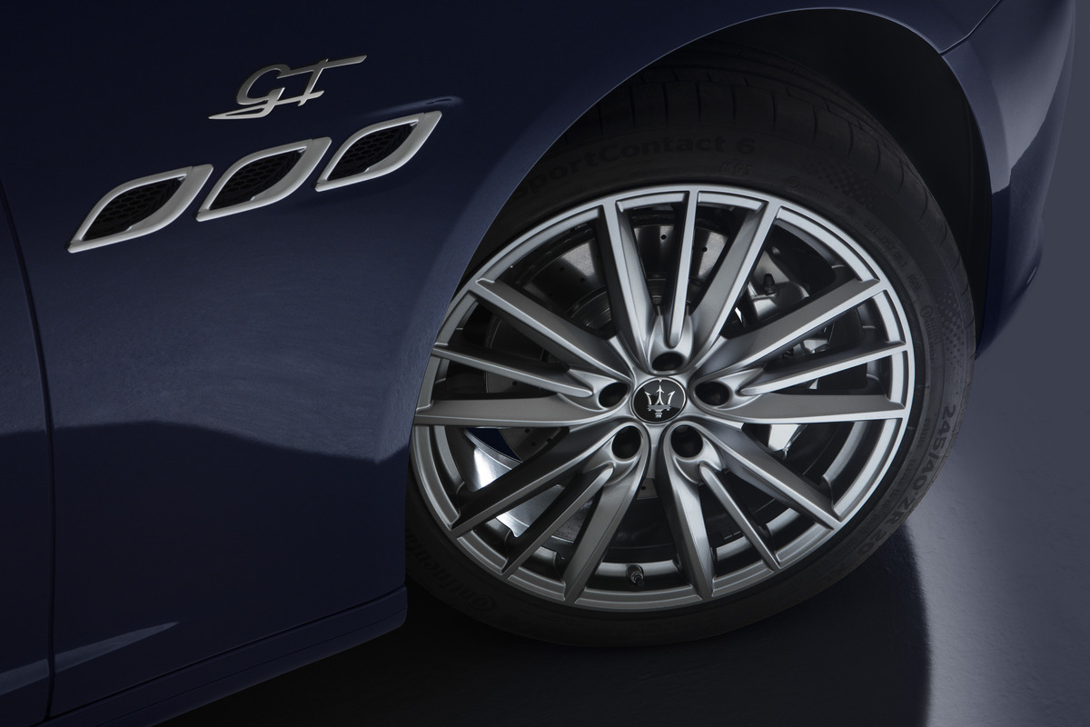Ghibli GT搭載Maserati自主研發的高效混能動力系統,2.0L直列四缸引擎搭配48V輕油電系統,再透過eBooster電控渦輪串聯傳統渦輪增壓,不僅擁有330匹馬力及450牛頓米的豐沛輸出,飽滿迅捷的低轉速扭力更可提供輕快靈巧的駕馭感受;在外觀部分,新年式Ghibli GT標配更為霸氣的19” Poseidone輪圈及紅色剎車卡鉗;引擎蓋前端也換上與全新超跑MC20相同的橢圓廠徽,前葉子板則鑲嵌專屬的「GT」草寫字樣,同時在標誌性的散熱鰭孔下緣以及全新C柱三叉戟廠徽也都點綴有GT車型的獨特藍色烤漆,象徵引領未來的新世代風采。