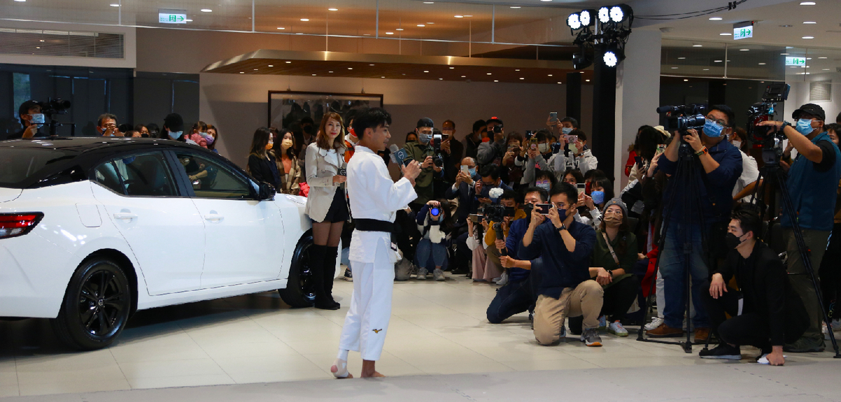 NISSAN ALL NEW SENTRA楊勇緯一日店長活動內容精彩,NISSAN官方粉絲平台報名熱絡,在配合政府防疫政策下,最後有近百位粉絲幸運被抽中參加活動,在活動現場觀賞楊勇緯精準詮釋ALL NEW SENTRA省油、安全、顏值「王者之風」的柔道美技,熱情參與快問快答的粉絲更是獲得楊勇緯親筆簽名的限量模型車,同時台灣體育大學柔道隊也有精湛演出。裕隆日產為響應國人健康自主生活,活動當天也準備料理神器SHARP Healsio水波爐烹飪精美料理,楊勇緯特別親自端出健康烹烤美食,與現場粉絲一起開心分享。