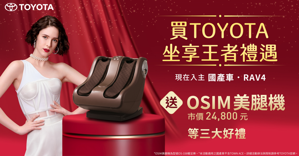 1月推出「買TOYOTA坐享王者禮遇」活動 購買指定車款送OSIM美腿機