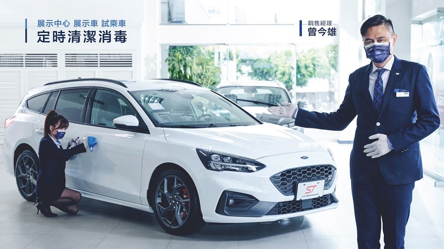 Ford致力為消費者打造安心防疫的賞車、購車及擁車服務,有鑑於國內疫情可能再次升溫,全台Ford服務據點包含Ford新車展示中心及專業服務廠,已提前升級準3級防疫措施,包含:落實測量額溫並正確配戴口罩,顧客「實聯制」登記。