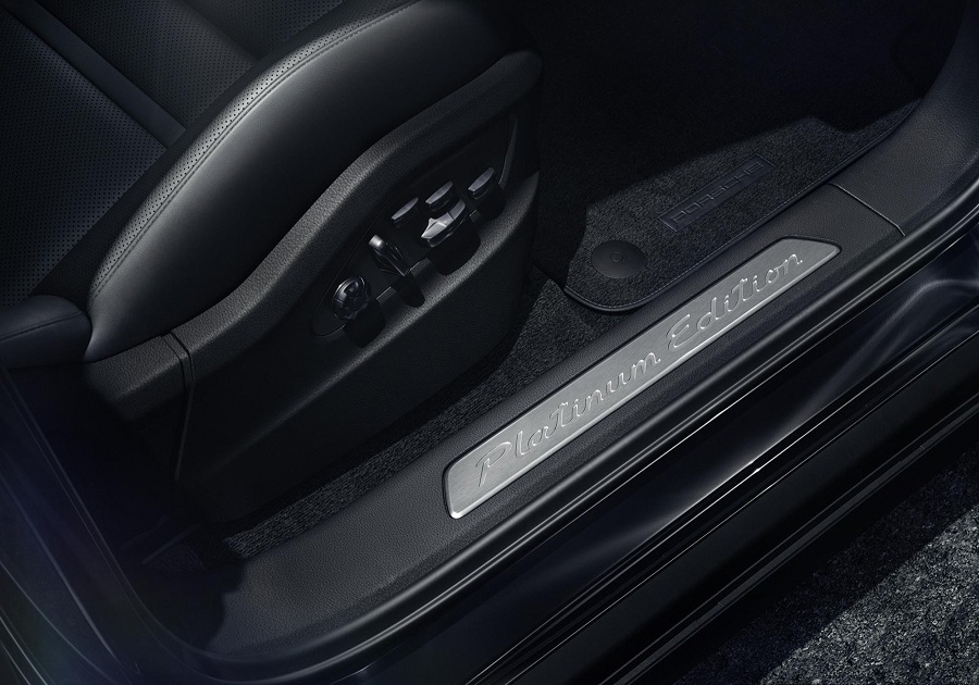 風格強烈的設計語彙也延伸到內裝。以蠟灰色的安全帶搭配髮絲紋鋁合金車門檻,前車門檻施以 'Platinum Edition' 專屬字樣,以及鋁合金紋理內裝飾板套件。
