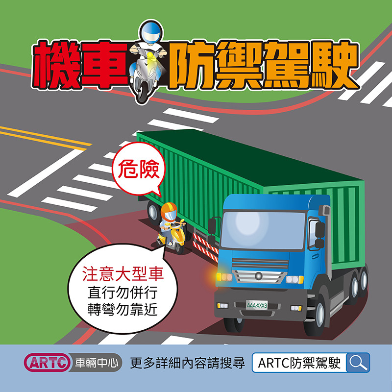 2022年開春之際,車輛中心又再推出『機車防禦駕駛攻略』小貼圖,今年正是以「遠離大型車」為主題,敬請多加轉傳、分享;也許您的一個舉手之勞,能為親愛的家人朋友們播下防禦駕駛觀念的種子,甚至成為影響一生用路安全的契機!同時,車輛中心的「防禦駕駛手冊-企業推廣專案」也再度展開囉,期待新的一年有更多企業主重視與響應,一同來關心員工的通勤安全。更多防禦駕駛資訊,請上車輛中心網站查詢:https://www.artc.org.tw/