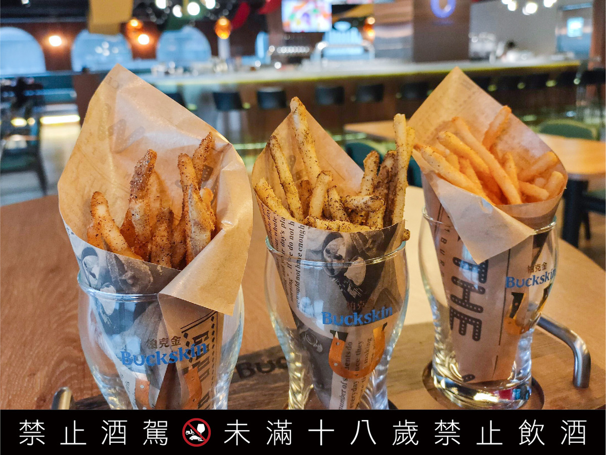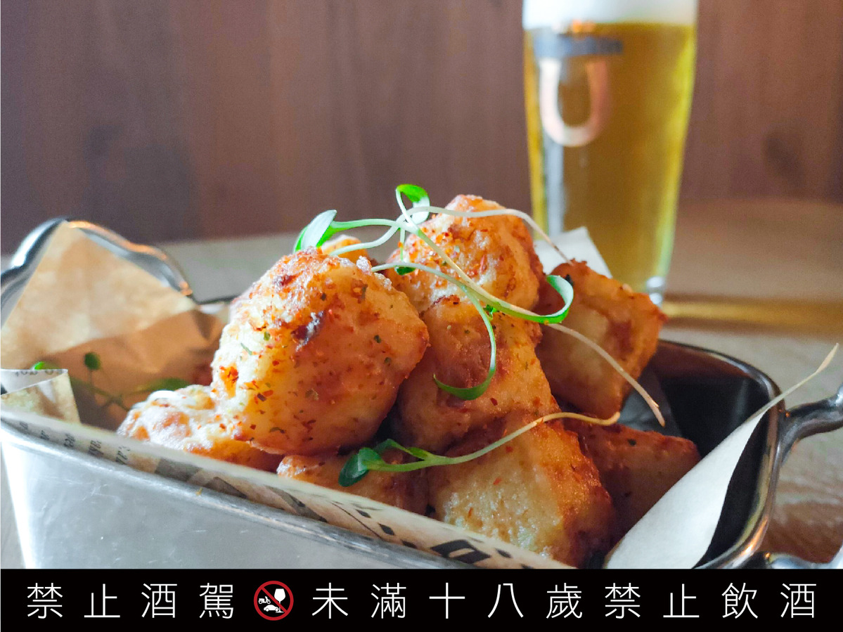 「三味細薯」(180元)由櫻花蝦、香菇、梅乾菜,三種以時間換取美味的乾貨研磨成粉,灑在色澤金黃誘人、香氣濃郁的細薯上,是別家吃不到的美味,嚴選細薯比起一般薯條更加酥脆,即便冷了脆度也還在,推薦與百搭、順口的「柏克金黃金拉格啤酒」一起享用,絕對過癮!