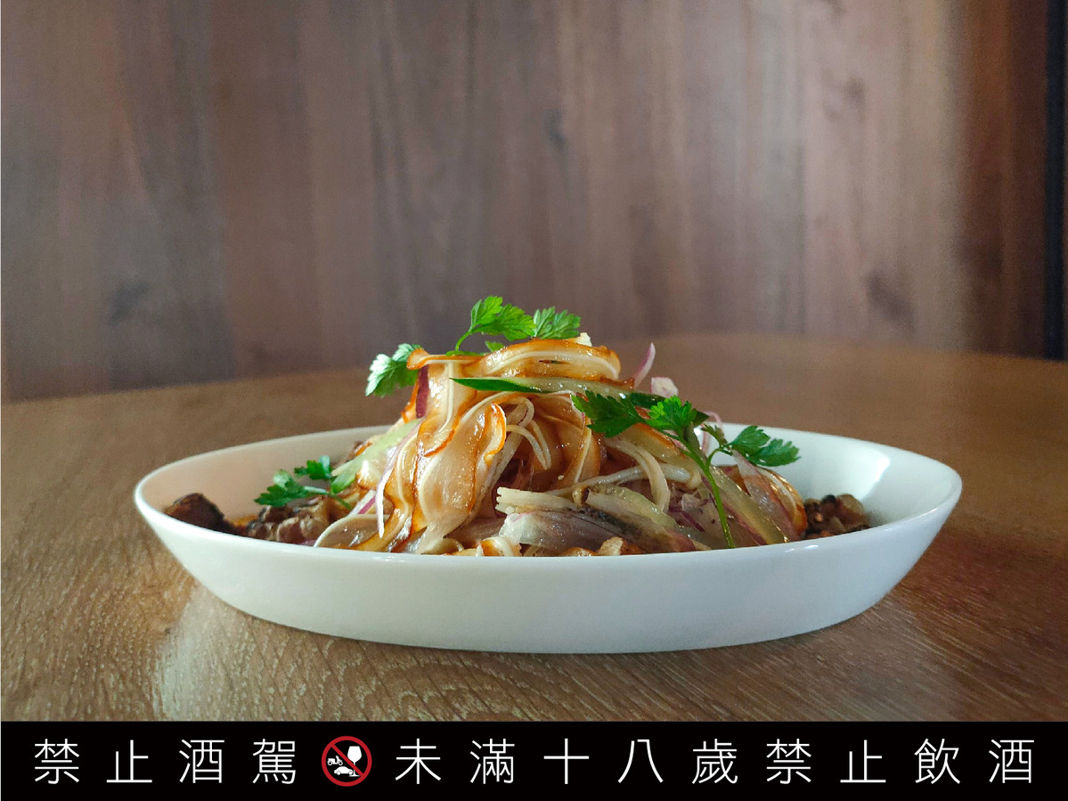 「涼拌豬耳」(150元)使用「柏克金冰釀勃克」啤酒醃製,搭配辛香辣醬,讓清爽涼拌的豬耳朵帶有微醺風味,適合搭配帶有煙燻麥芽風味的「柏克金煙燻啤酒」,自然形成的濃郁香氣與獨特風味,讓兩種鮮明匹配的滋味在口中完美結合!