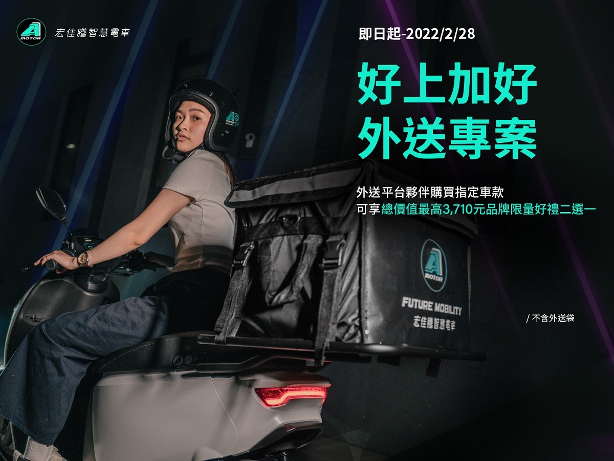 而針對想購買智慧電車作為最佳拍檔的外送平台夥伴,宏佳騰智慧電車也推出2月28日前購買Ai-1或Ai-3任一車款(包含Ai-1 Sport+),即可享有早鳥三好禮或原廠精品貨架組二擇一購車方案,讓您牽新車就可擁有外送載貨好幫手的高強度貨架配件。歡慶新車上市並提供消費者更完整的安全體驗,3月底前選購AiR-1機車行車紀錄器,再贈送總價值2,300元的安全帽架與光學鏡面清潔液,限量100組。即日起至全台智慧門市試乘體驗並填寫問券,還可免費得到只送不賣、輕鬆拎著走的「品牌飲料提袋」乙個,數量有限、送完為止。