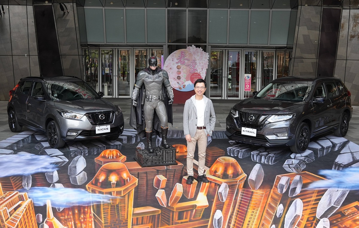 【蝙蝠俠】電影將於3月3日在台上映,NISSAN與華納兄弟共同宣傳,為讓民眾進一步感受親臨高譚市電影場景的特殊體驗,NISSAN與台灣知名3D地景藝術家蘇家賢老師共同合作,於2月26日至2月28日連假期間,在新北市板橋大遠百舉辦NISSAN KICKS「夜行版」及X-TRAIL「夜行版」外展上市活動,特別以創新多元藝術巧妙連結藝術與空間,打造高譚市電影場景(註7),華納兄弟等身蝙蝠俠FRP公仔模型將親臨現場,創造汽車、電影及3D地景藝術的三重結合,敬邀民眾前來一同共襄盛舉。活動期間消費者親臨全國NISSAN展示中心或外展活動,都有機會獲得【蝙蝠俠】電影周邊贈品。