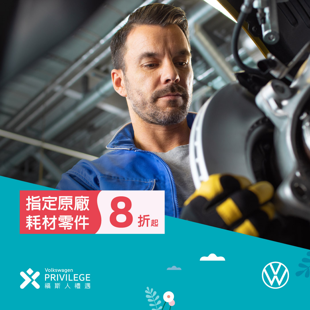 「福斯人禮遇計畫」自推出至今已有78,000名車主加入,享受Volkswagen 領先業界會員制度,搭配原廠零件和精品優惠,此次指定原廠保養耗材零件8折起,Golf 8與GTI等原廠系列傘、原廠車頂行李架及車頂行李箱組合64折起,而抗敏防螨粉塵濾網75折,可過濾比PM2.5更小的懸浮微粒。此外,自費更換普利司通輪胎享買3送1,透過不定期推出活動和優惠內容,期盼提供每位車主無後顧之憂的擁車旅程及優良服務品質。