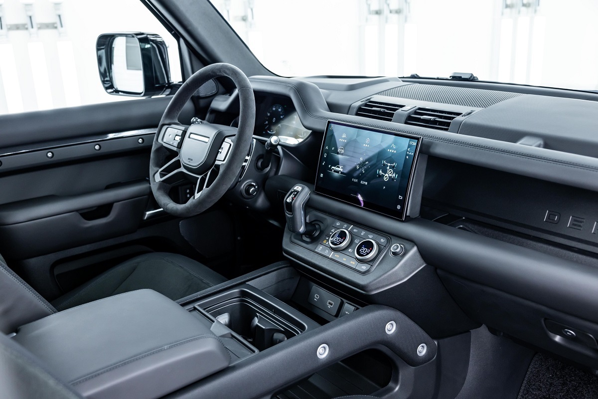 Edition 特仕版採用一系列專屬外觀套件打造個性強烈的運動氛圍,全車選用大面積深色頂級喀爾巴阡灰金屬漆搭配緞光防護膜,引擎蓋、尾門和車頂則採用亮澤黑對比色與車身相互呼應,營造神秘的不凡氣勢。配置 22 吋亮黑色鋁合金輪圈與黑色卡鉗相互搭配,透過極大化的視覺張力吸引路人目光焦點,車尾排氣管採用極具性能表率的雙側四出設定,經典側開式尾門鑲嵌 V8 金屬銘版,刻下對於 Land Rover Defender 90 V8 Carpathian Edition 特仕版身為道路王者的最佳註解。