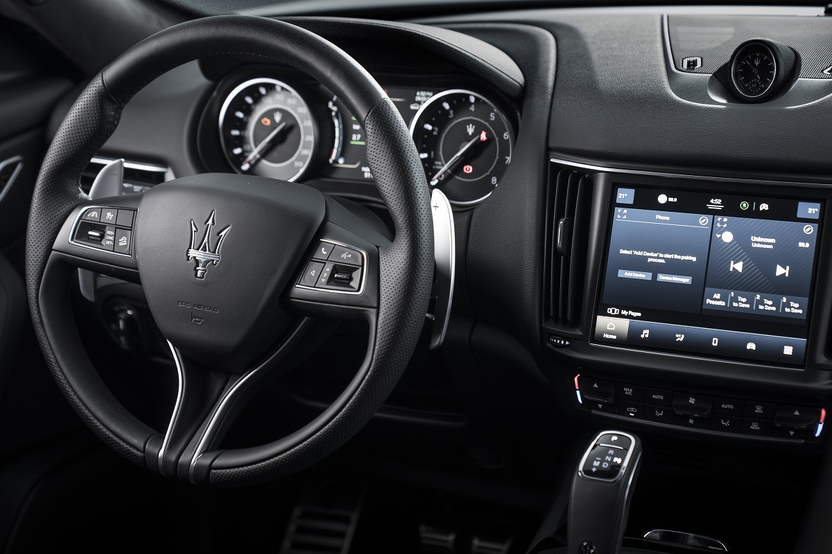 首先映入眼簾的是 Modena 甚或是 Trofeo 車款才得以配置的【Sport】空力套件:運動化前保桿以A字型穩定翼搭配加大進氣格柵,配合擁有更優越擾流效果的運動化後保桿及尾翼,在積極駕馭時提供更強的下壓力及氣流效應;而升級至 380mm打孔通風碟的前六活塞煞車系統,搭配紅色剎車卡鉗及黑色20 吋Efesto 輕量化鋁圈,為Levante GT【Sport】帶來更難以忽視的外型張力。