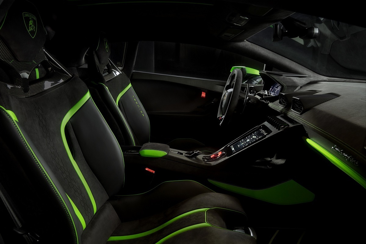 俐落、更具戰鬥氣息的風格可見於Tecnica的車室空間,更流暢的線條設計與精簡色調,使駕駛者行進間更容易閱讀儀表板資訊。專為此車輛重新設計的HMI 觸控式螢幕,可輕鬆控制車輛各項連接設備與Apple CarPlay連接功能;受Huracán STO啟發,同樣可由觸控式螢幕控制的遙測系統,針對遙測資料進行即時記錄,並可與車主專屬的 Lamborghini UNICA 手機應用程式連動。