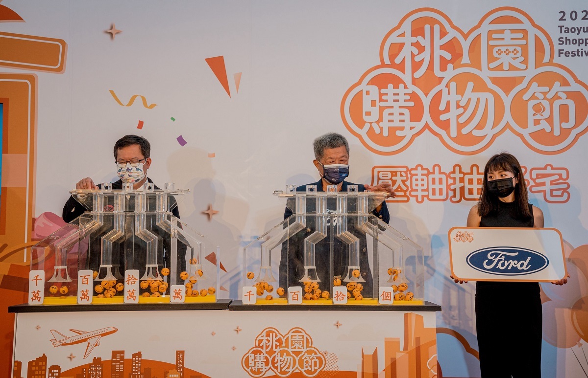 為振興地方經濟及促進市場消費,桃園市政府精心規劃2021桃園購物節,獲得消費者熱烈迴響,在今日(4/14)舉辦的「壓軸抽」最終抽獎活動中抽出汽機車項目最大獎的桃園市長