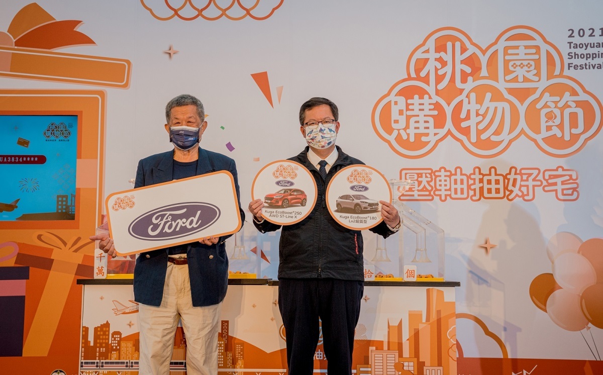 座落於桃園中壢,在台深耕近50年的福特六和汽車,為響應桃園市政府振興地方經濟推出的2021桃園購物節活動,傾力支持提供Ford Focus Active、Ford Kuga等,共計四輛熱門新車作為抽獎獎項,儼然成為桃園購物節提振人氣與買氣的超級助攻員。在今日(4/14)舉辦的「壓軸抽」活動當中,在桃園市長鄭文燦與福特六和汽車董事長許智樂見證下,汽機車獎項最大獎Ford Kuga EcoBoost®180 Lv2超質型(市值92.9萬)純正運動跑旅以及Kuga EcoBoost® 250 AWD ST-Line X(市值121.9萬)極致性能跑旅,正式抽出兩位幸運得主,為2021桃園購物節畫下圓滿句點!