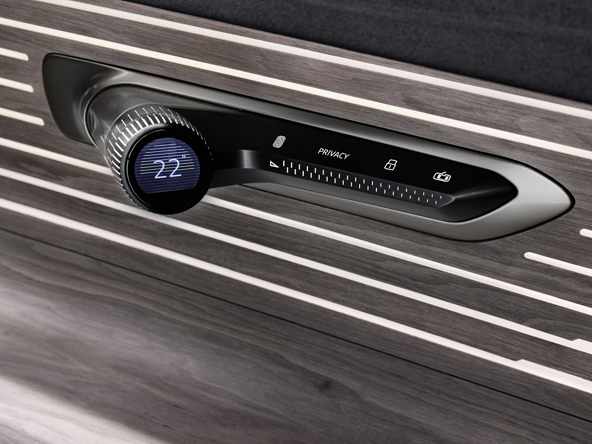 而urbansphere concept 宛如小型的智能劇院車艙,不僅每個座位區配有獨立音響及專屬螢幕,可透過語音控制、手勢及眼球追蹤等模式啟動多項個性化資訊娛樂功能,另雙排座椅中間更設有可升降收折的透明OLED 「cinema screen劇院銀幕」供後排乘客一同觀賞電影、音樂會或加入視訊對談,左右車門扶手更設有VR眼鏡可與車內信息娛樂系統選項搭配體驗。而受惠數位化科技,其更搭載創新智慧功能,車內設有壓力偵測模式,可借由臉部掃描及語音分析來評估乘客的感受,智慧提供個性化放鬆建議或啟動冥想應用程式等功能。