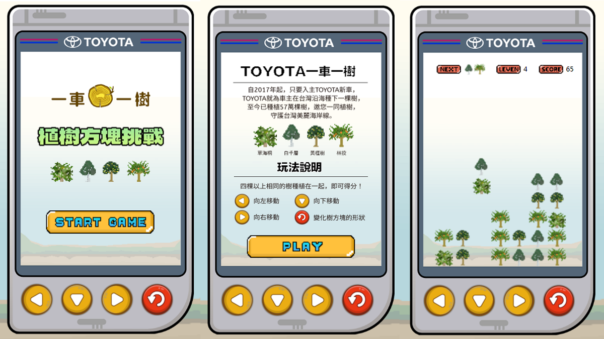 「TOYOTA一車一樹 植樹方塊挑戰」遊戲網址:https://www.toyota.com.tw/event/toyotaplanttreesgame