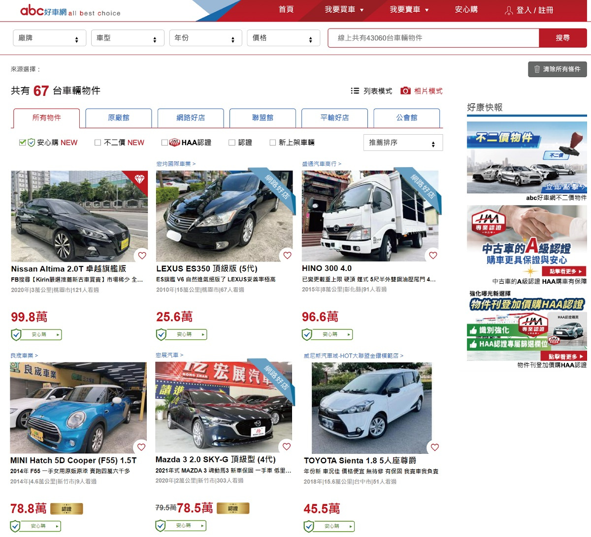 abc好車網推出全國首創「安心購」服務,提供消費者購買中古車時,車款價金代管、3天不滿意可退車退款,大幅提升消費者購車交易安全