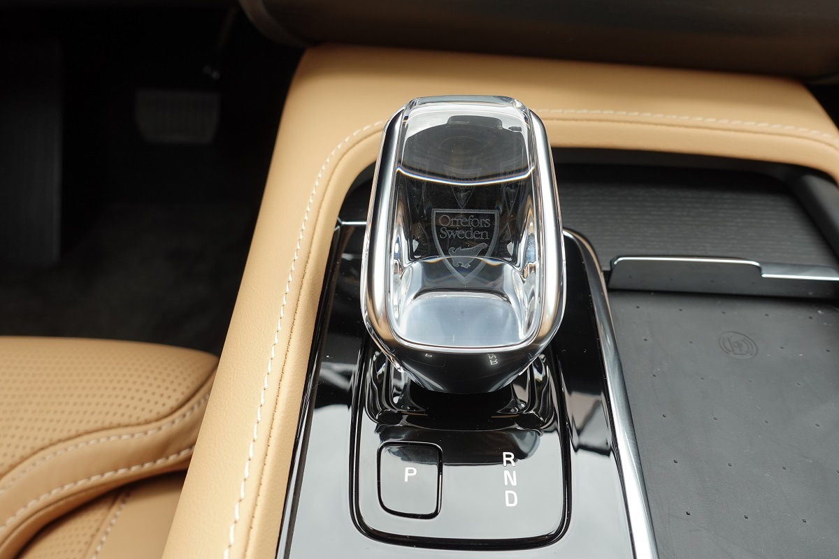 鞍座前方有手機無線充電板,旁邊的電子線傳排檔頭竟然是blingbling水晶材質,是由瑞典水晶大廠Orrefors專為Inscription打造的,質感真的是很讚。Keyless的引擎啟動/停止鈕是採轉右開轉左停的設計,然後是金屬色的Drive Mode駕駛模式切換旋鈕,接著就是電子手剎車及Auto Hold靜止自動剎車的按鍵,真的是簡潔到令人神清氣爽。