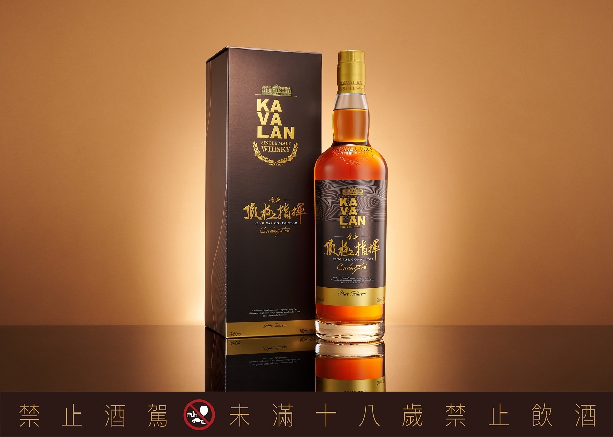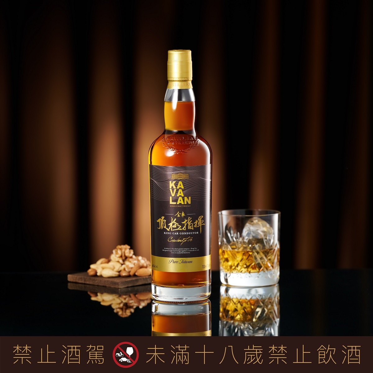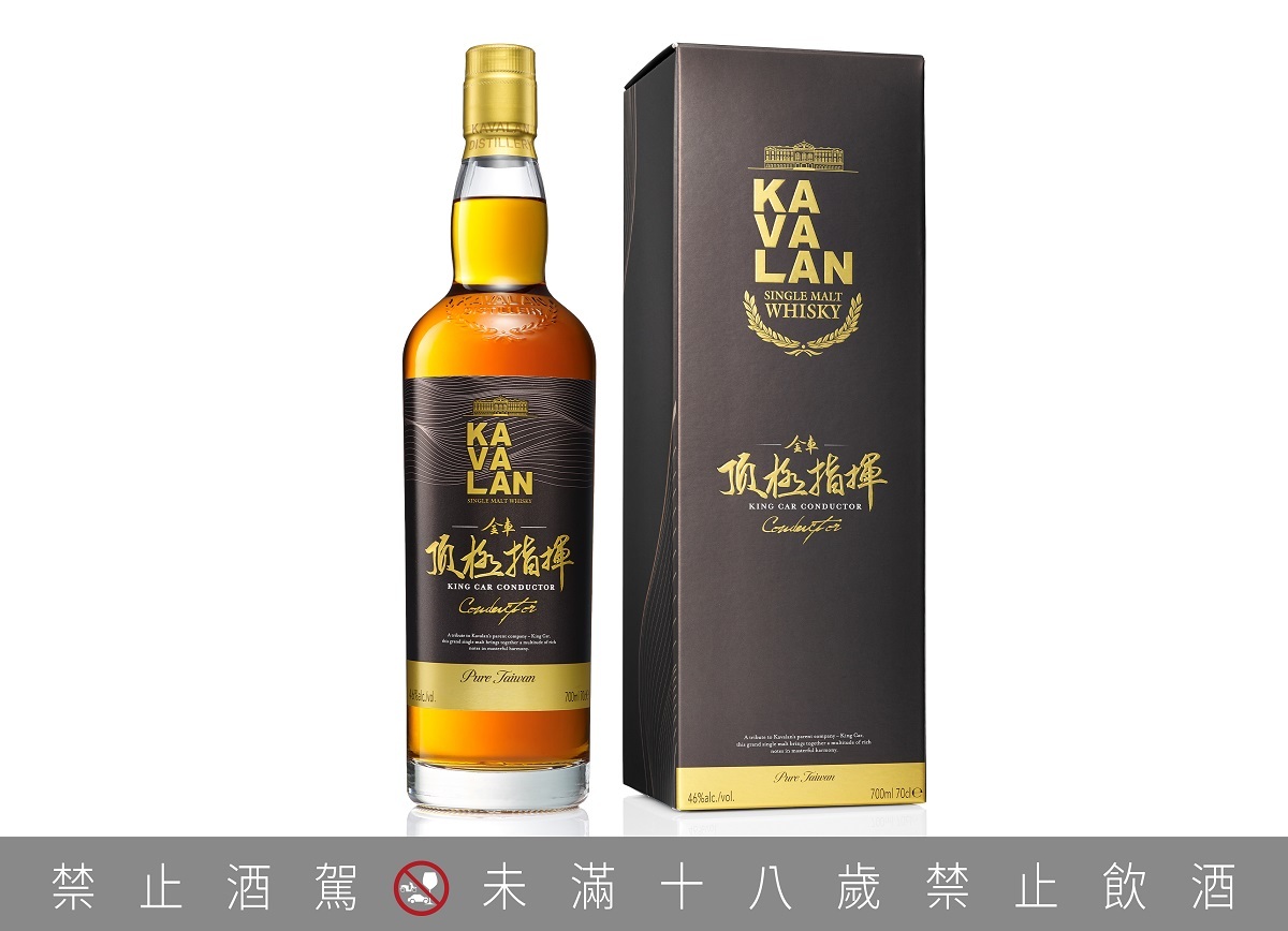 金車頂極指揮單一麥芽威士忌King Car Conductor Single Malt Whisky於2011年上市,是首款以金車命名的單一麥芽威士忌,秉持母集團金車企業突破創新、堅守品質的理念,由調酒師團隊精選數種不同風味的酒桶調配而成,完美呈現豐沛花果香氣與多層次細緻酒體,致敬金車企業的多元精神,此酒款已四度榮獲SFWSC雙金牌佳績,累計獲頒超過40面國際賽事金牌肯定。「金車頂極指揮單一麥芽威士忌」於近期推出新包裝,帶有金屬光澤的深色質感酒標及外盒,融入宜蘭雪山山脈圖騰,傳達感念自然土地、山水的恩賜,也強化噶瑪蘭酒廠意象;行書筆畫的流暢典雅,與金黃酒液的流動相得益彰,交織成一幅噶瑪蘭威士忌柔順豐郁的美麗圖景;酒款風味蘊含木瓜、香蕉、青蘋果等繽紛果香,以及花卉、紅棗的清香,乾淨且擁有細緻的深度層次,適合與台式、日式、泰式等料理搭配飲用,不只包裝設計,連風味、口感都與品名的「頂極指揮」相呼應。