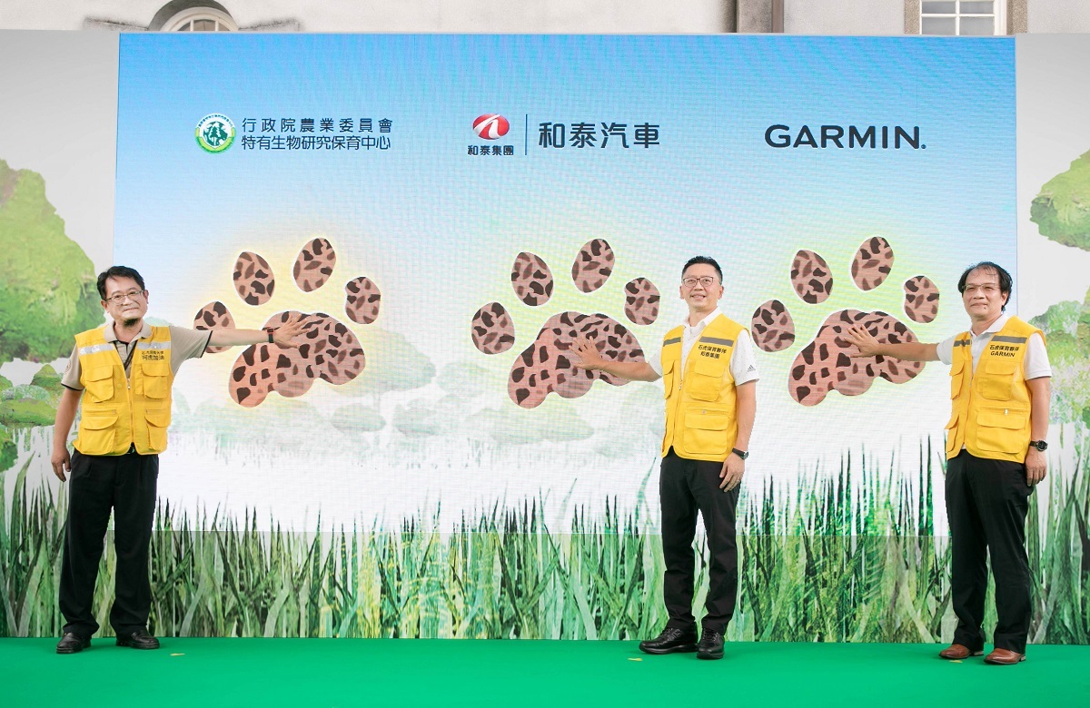 6/22和泰集團台灣原生動物守護計畫記者會,和泰集團和泰汽車總經理蘇純興(中) 與行政院農委會特有生物研究保育中心主任楊嘉棟(左) 及GARMIN亞洲總經理王正偉(右) 攜手開啟虎力平安元年