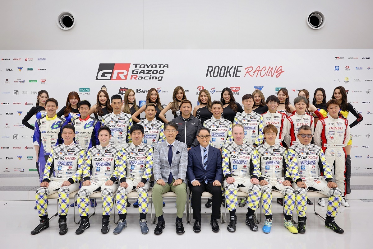 TOYOTA社長 - 豐田章男 (前排右四)、GAZOO Racing Company總裁 - 佐藤恒治(前排左四) 與ROOKIE Racing車隊大合照