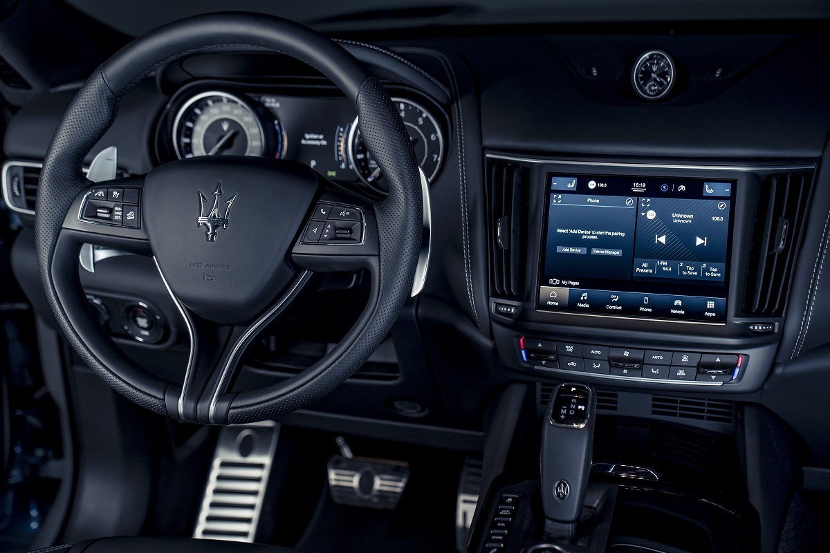 Levante Modena【Trofeo Line】不只在外觀設計上巧奪天工,性能表現更是一點都不怠忽。配備來自法拉利 Maranello 工廠所調校的 3.0L V6 雙渦輪增壓缸內直噴引擎,具備 350hp 最大馬力與 500Nm 強勁扭力輸出,搭配傳承自純正賽車的序列式 ZF-8 速手自排變速箱,指標性的迷人聲浪在每個檔位的扭力峰值引吭高歌,伴隨每一次換檔產生的純粹音爆,讓人陶醉在無可抗拒的駕馭快感中。誠如 Maserati 對於駕控反饋的執著,Levante Modena【Trofeo Line】同樣配備紮實的底盤及懸吊科技:前後軸主動式 6 段氣壓懸吊可控制最多 8.5 公分的底盤高度調整,足以涵蓋越野地形到高速公路的使用需求。標配的 ADAS 先進駕駛輔助系統,包含 ACC 主動式定速巡航、FCW 進階緊急煞車輔助系統、ABSA 主動式盲點偵測輔助系統以及 LKA 主動式車道維持輔助系統,帶給車主更完善的主被動防護。而 Maserati 智慧型 LED 矩陣頭燈則可以大幅度增加駕駛人對障礙物的反應距離,並透過智慧型系統轉換照明模式,能有效避免對前車和對向來車造成眩光,也可於彎道中主動照亮視覺暗角;不論在市區行駛、高速奔馳或不良天候下,都有對應的照明模式。如此堅實的配備設定,讓科技及安全性提升至更高的層次,完美展現地中海疾風跑旅的魅力。