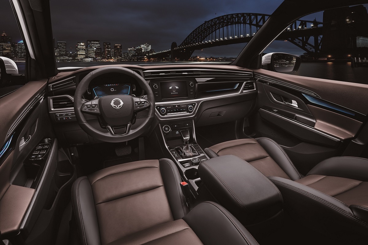 KORANDO以新世代低重心超廣體車身設計,打造出兼顧房車操控、越野性能與寬闊車室的第四代車型。外觀在車頭部分,運用MFR多焦點反射式全LED頭燈與霧燈,搭配一體式前保桿鍍鉻水箱罩與進氣罩塑造霸氣外觀,車身以時尚流線的車身折線,加上18吋全新造型炫銀鑽石切割鋁圈,展現動感,車尾以貫穿式鍍鉻飾條,搭配全新設計LED尾燈與運動化後下護板以強調運動風格,整體呈現出極具個性與動感流線的視覺感受。