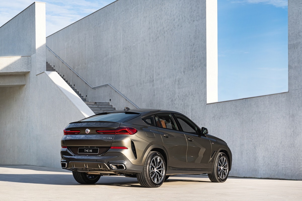 全新BMW X6大膽前衛、完美融合Coupé設計的車身低扁流線造型更是眾人的視覺焦點,由B柱緩緩後掠而下的俐落流線斜背設計,結合車側的高腰線、外擴飽滿的後輪拱、橫亙於車尾兩側的L型LED尾燈組與氣勁十足的車尾後保桿造型,特別是那兩側的導流孔設計加上雙邊單出矩形排氣尾管及後下擾流,彷彿宣示著BMW X6鉑金版的強悍跑格,盡顯霸氣姿態。