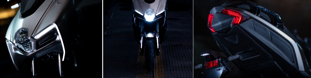 MMBCU採用遠近燈上下分離的Class D汽車級LED大燈,讓夜間照明度最大化,蛇眸日行燈及分離式尾燈均採用LED規格,增加視覺效果的同時也提升MMBCU在車陣中的辨識度,前後的LED方向燈同樣也具有Hazard雙黃警示燈的功能,讓騎乘更安全。