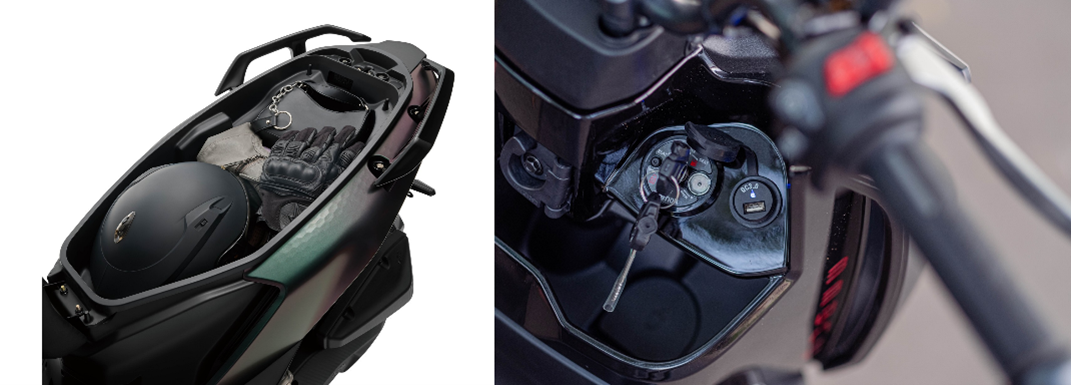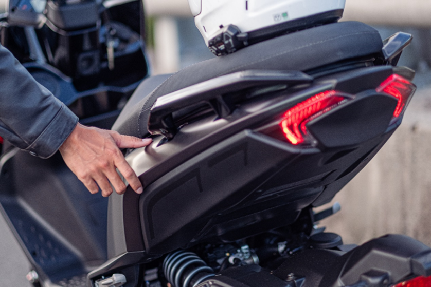 28公升置物空間,可放置一頂全罩及一頂半罩安全帽,滿足旅程途中裝載需求。(可放入SHOEI X14 XL大帽體安全帽)