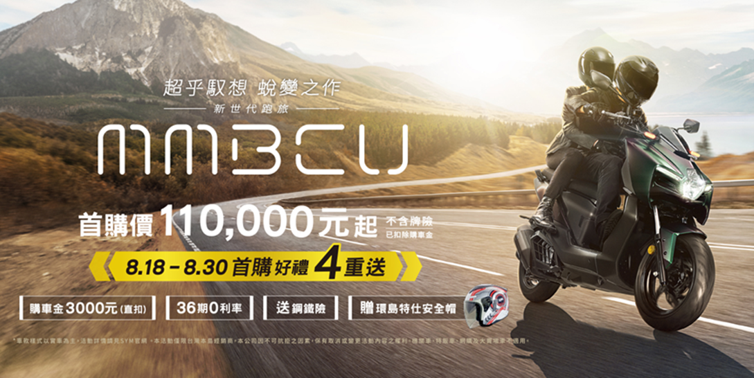 CU系列推出的第一個車款,新世代跑旅「MMBCU」,MMB代表「Mamba曼巴」,和曼巴蛇一樣有長距離高速移動的特性,MMBCU以SYM引以為傲的158c.c.R世代水冷引擎為基礎,但車輛調教為更適合長途騎乘、良好機能性的GT跑旅車款,期待以新世代跑旅的定位,帶給消費者全新的車款選擇。