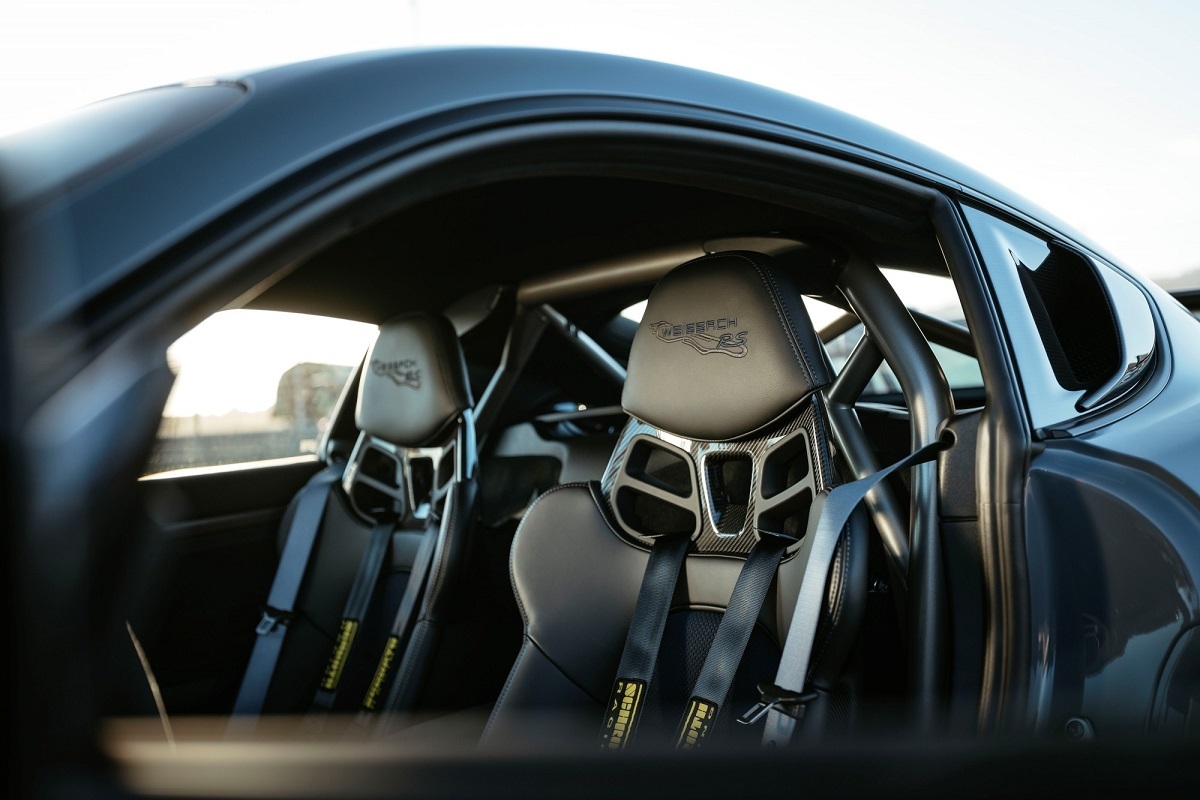供車主選配的 Weissach 套件使得 GT4 RS 的設計更加動感。前蓋、空氣處理進氣格柵、冷卻進氣格柵、引擎外罩、外側後視鏡上方飾板和尾翼均採用碳纖維細節裝飾。其鈦合金排氣管設計向經典賽車保時捷 935 致敬,座椅後方的防滾架也同為鈦合金製。儀錶板上方採用真皮內裝套件搭配 Race-Tex 材質製成,並鑲上大型Porsche字樣。除了原本的鋁合金輪圈,Weissach 套件另可加價提供 20 吋鎂合金輪圈。