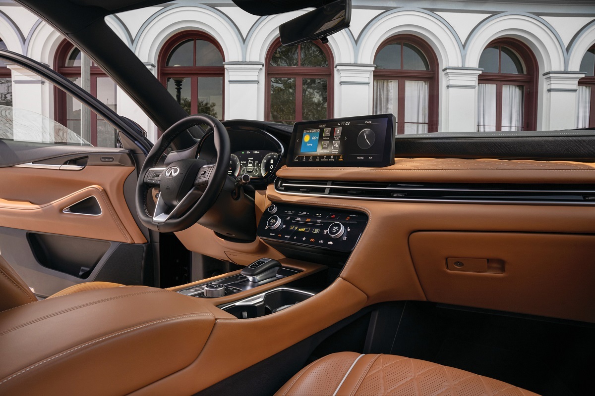 THE ALL-NEW INFINITI QX60以極致日式美學雕塑兼具流線動感與典雅大器的車身線條,搭配LED數位琴鍵頭燈與雙弓式水箱護罩攫取眾人目光,湧浪式車身設計與懸浮式車頂更創造前衛視覺美感。大面積皮革包覆的內裝透過不同材質的層層堆疊,展現前所未有的豪華質感。雙前座更擁有舒壓按摩椅附通風電熱功能(註8),3種舒壓按摩模式,讓乘坐者將生活中的壓力完全釋放。