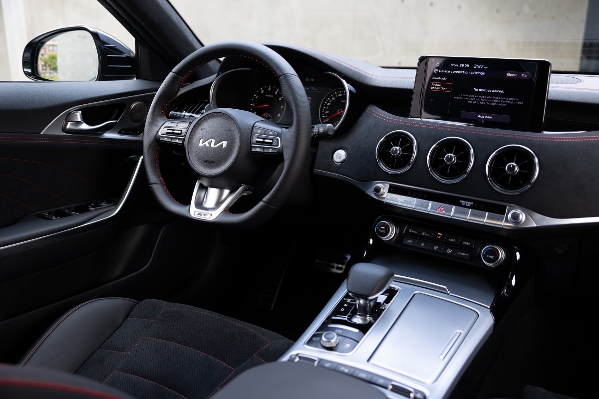 The Stinger具備形質俱佳的豪華旗艦車艙格局,2.0 GT-line及3.3 GT AWD車型搭載8吋懸浮式觸控螢幕與7吋全整合智慧型數位儀表板,並支援Apple