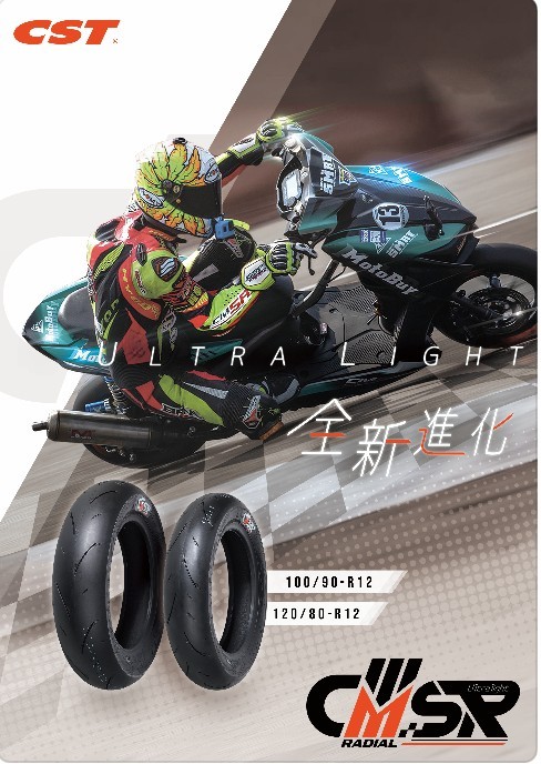2017年發表第一代的CMSR十二吋競技胎,經過多年醞釀推出全新一代的CMSRR,規格為100/90R12、120/80R12。單一輪胎胎體輕量化達500公克,新舊款胎款的重量差異達13%,試圖在極度輕量化與操控性方面取得平衡點,帶給騎士全新的操駕體驗。