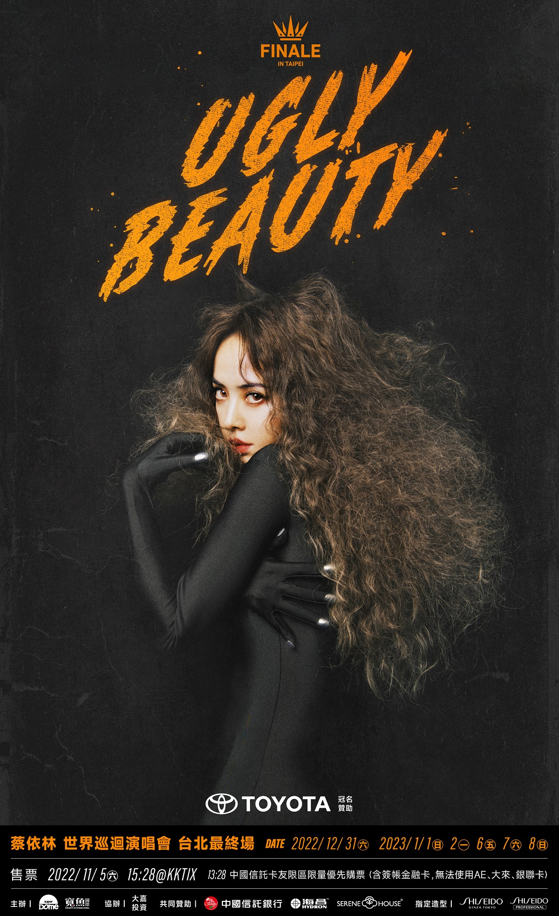 時隔一年多,天后強勢回歸!蔡依林《Ugly Beauty 世界巡迴演唱會FINALE in TAIPEI》將於2022/12/31、2023/1/1、2、6、7、8 一連舉辦六場,首場就要與粉絲共度跨年夜!本次TOYOTA冠名贊助《Ugly Beauty 世界巡迴演唱會FINALE in TAIPEI》,將與Jolin攜手規劃一系列豐富的活動,邀請粉絲們共襄盛舉這場怪美盛事!