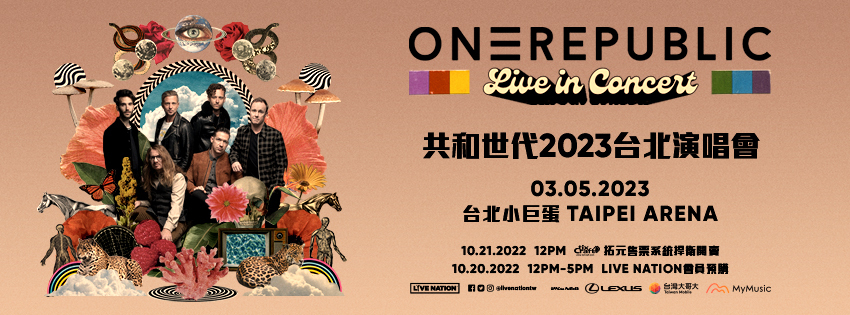 首發推出美國搖滾天團OneRepublic共和世代2023台北演唱會